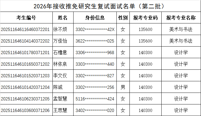 2026年接收推荐免试研究生复试面试名单公示(第二批)