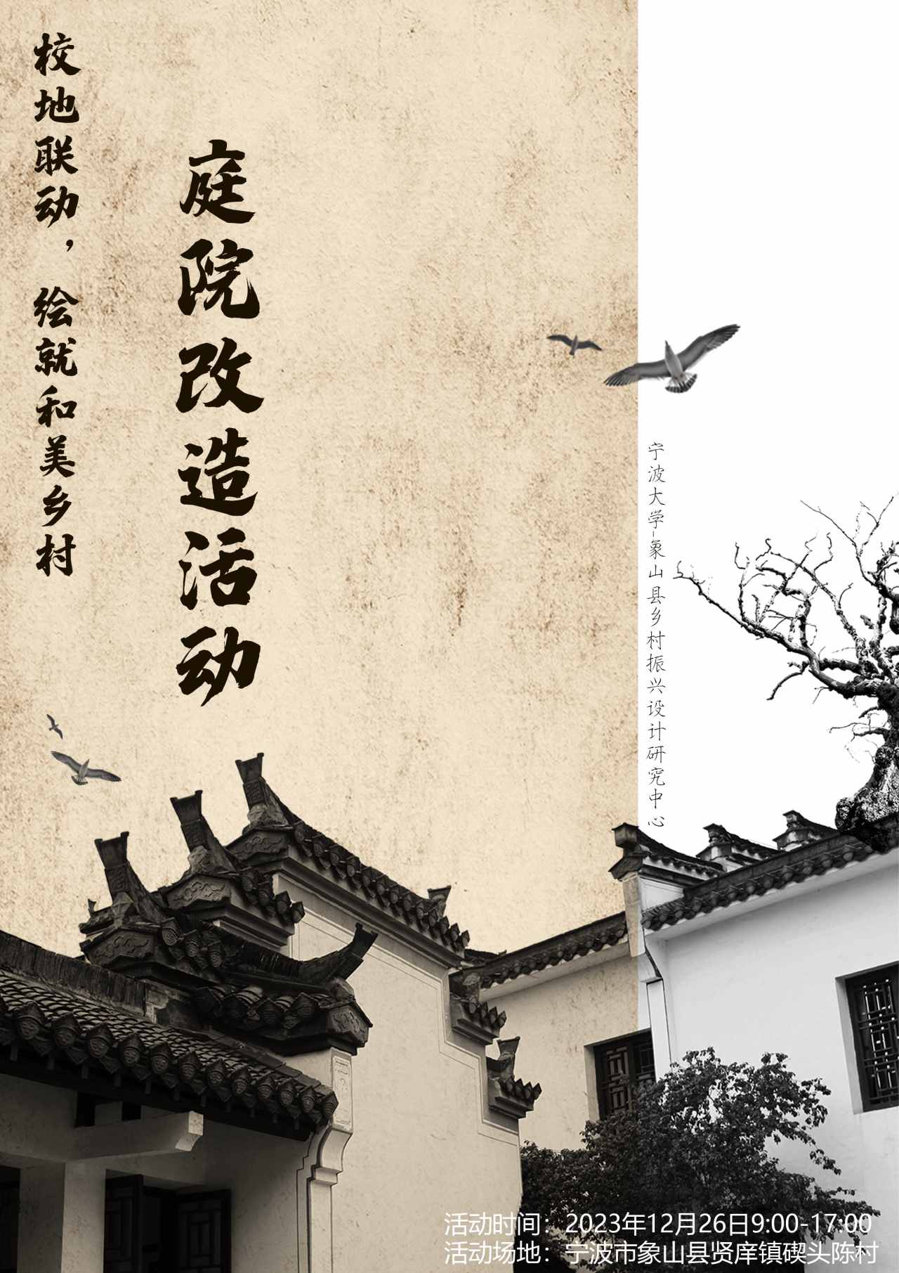 2023年12月26日调教 ——象山县乡村振兴设计研究中心举办美丽庭院改造活动,该研究中心旨在推动校地联动以响应乡村振兴政策,达到艺术赋能乡村的目的。