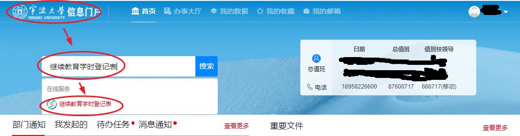 步骤2:在网页左上角的搜索框里输入关键词“继续教育学时登记表”