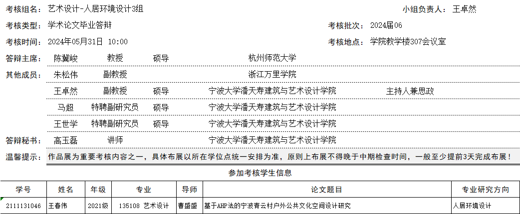 温馨提示:答辩所涉及材料不得晚于毕业答辩时间,一般要求至少提前3天内完成,如果材料不全或审核不通过,一律以不符答辩要求延期答辩。如果答辩组有特殊材料提交时间,早于最迟3天要求,须以答辩组安排为准。