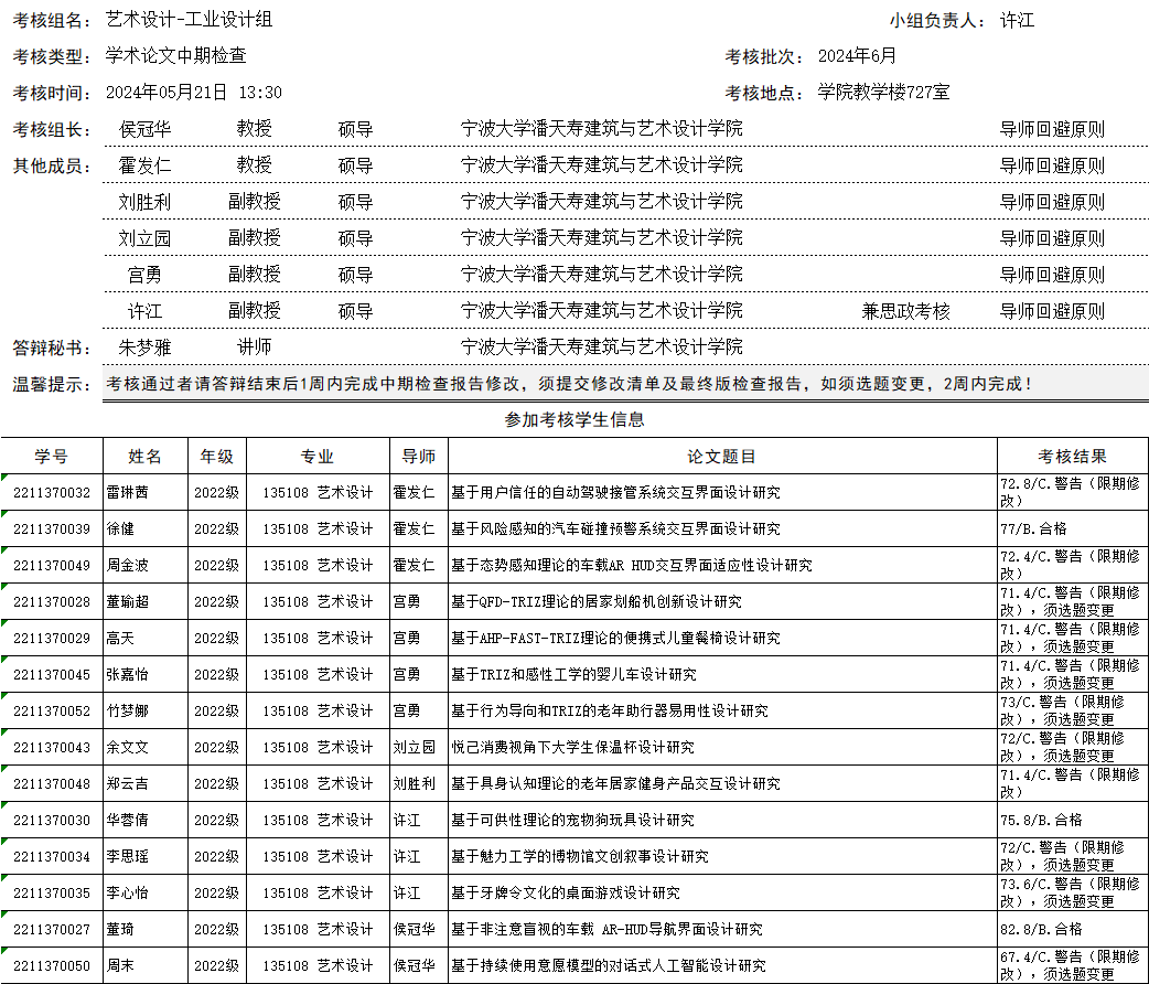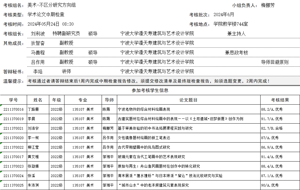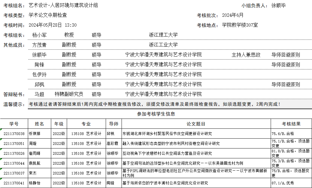 2024年研究生学术论文中期检查结果公示