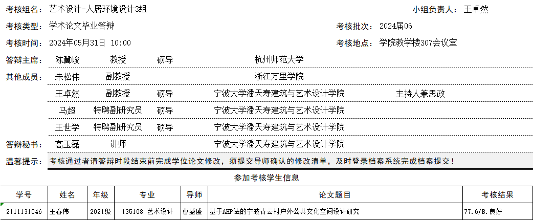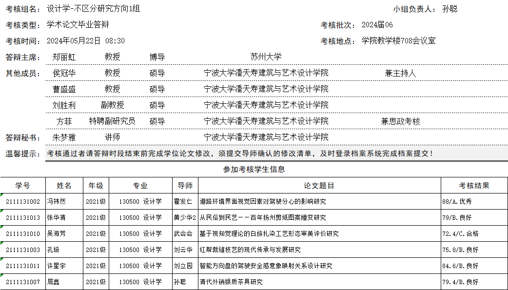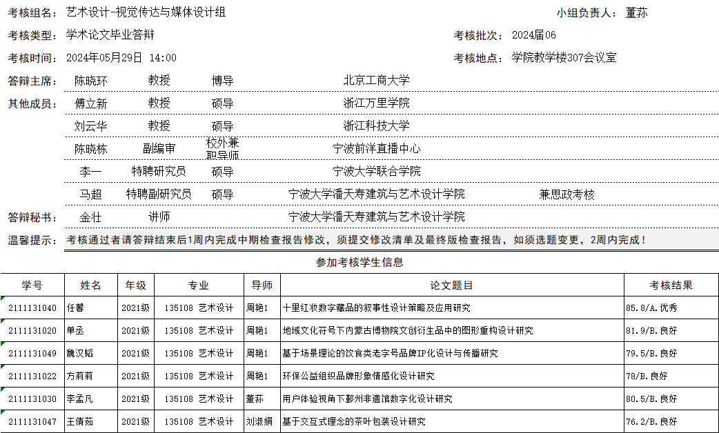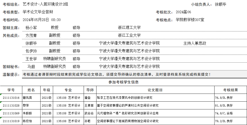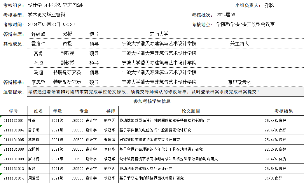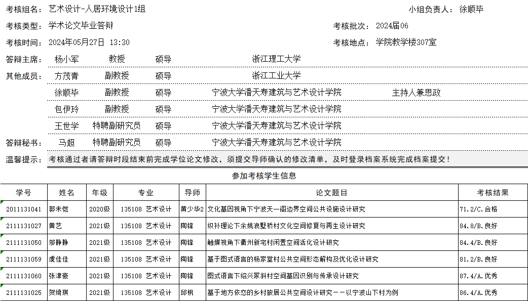 调教 2024届06批次调教 硕士学位论文毕业答辩结果公示