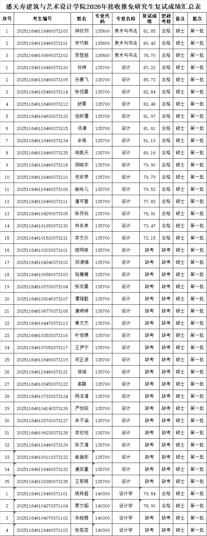 调教 2026年接收推免研究生复试成绩汇总表(第一批)