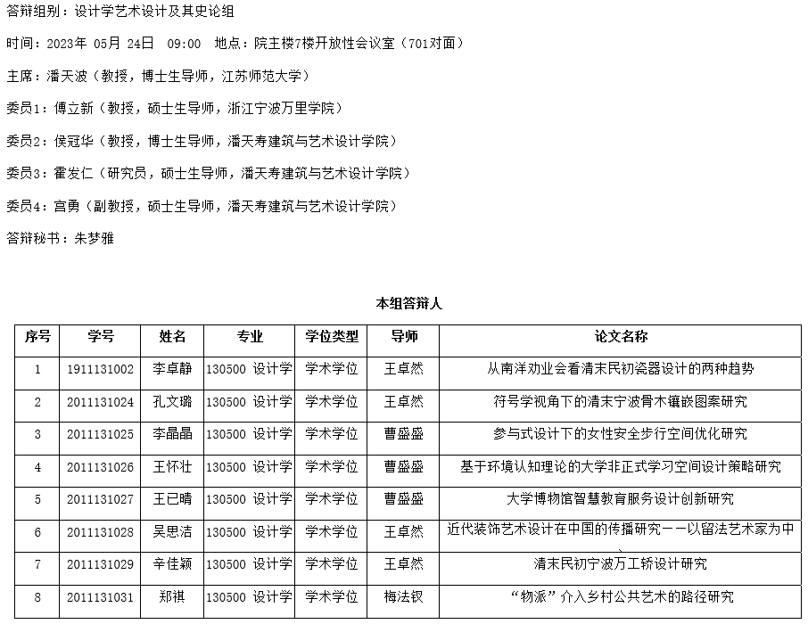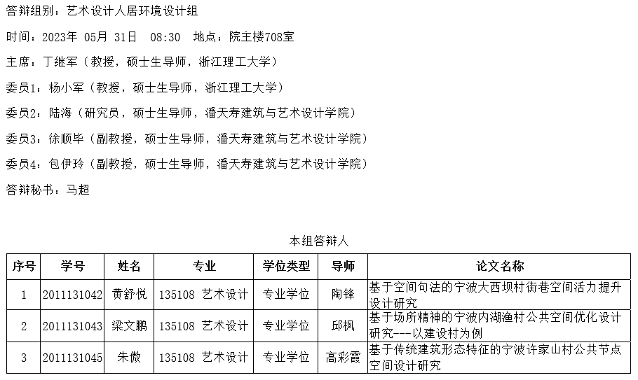 调教 2023届6月批次调教 硕士学位论文答辩公告