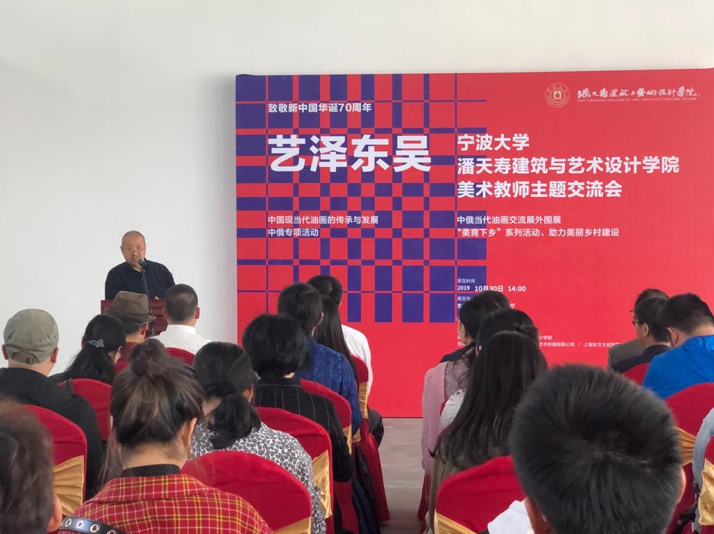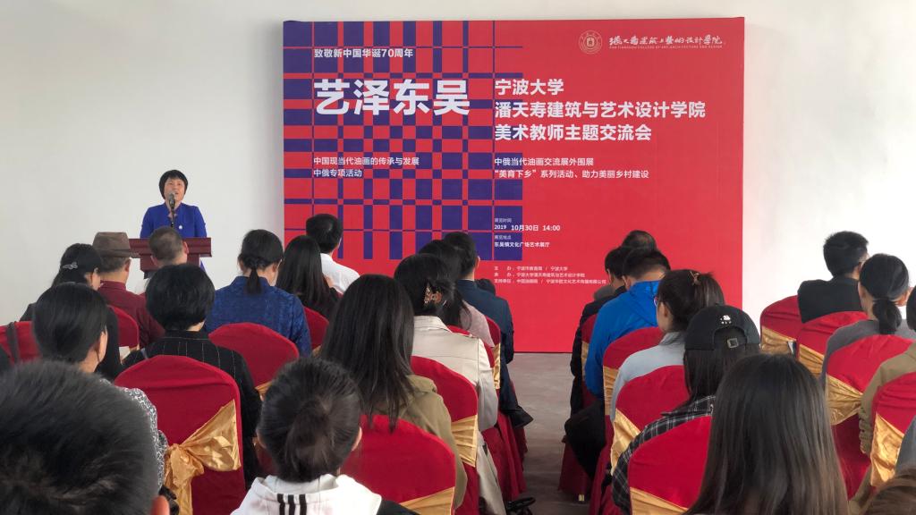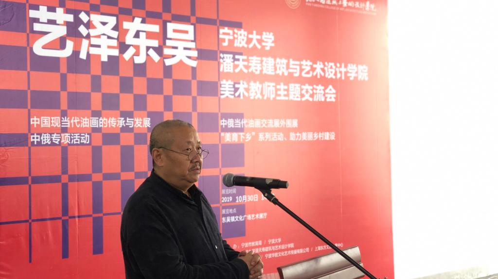 潘艺学院联合东吴镇政府,在双方展开全面合作之际,举办宁大潘艺学院创新创业基地落户东吴后的首个作品展和座谈交流会,作为中俄当代油画交流展外围展的同时,也是学院党委“美育下乡”的首个作品展。活动旨在用艺术为“美丽乡村”建设添砖加瓦, 另一方面也让我们的学生在此施展才华的同时能更深认识社会、人民,让他们的成长更有根基。