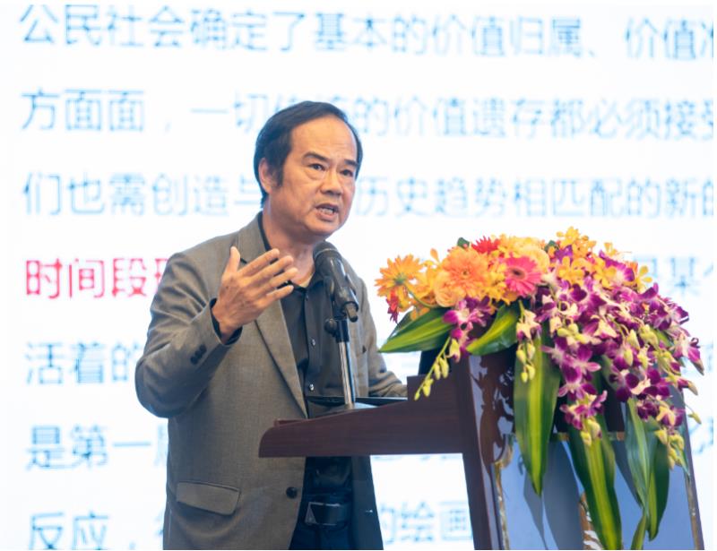 国内理论家的目光主要还是集中在油画的“本土化”、“现代性”等问题上。曹庆晖教授以《“请进来”的艺术》,重点讨论了油画教育过程中的“请进来”现象。请进来,即邀请国外艺术家来中国授课。曹教授梳理了近代以来,数次“请进来”的背景、作用以及与当今油画现状的关联。北京林业大学李昌菊教授的题目是《基于传统的中西融合之路——1949-2019年的油画本土化》。李教授把此一百年间中国油画本土化的时间分为三个阶段:1919-1949为第一阶段、1949—1957为第二阶段、1957—2019为第三阶段并以此讨论了今日中国油画在表现社会现实、续接中国文脉、建立自己文化形象等问题。周至禹教授作了题为《继往开来——中国油画当代性和本土性的路径探索》的报告。周教授以写实油画为例,深入探讨了油画的当代性、多元性、本土性以及写实、具象、表现等问题。通过大量例证,周教授对油画的当下发展作出了自己的判断,他认为当代艺术家:一方面需要在绘画本体上为视觉智慧的深度开拓创新,充分利用社会图象资源,使用更具冲击力的视觉方式对当下的经验表达,运用全方位的体验观看,体察和拓展作品的呈现;另一方面,还需要在外延上体现一种对人类文化建设和人的生存状况的视觉概括与把握,视觉陈述的特定社会针对性和文化针对性,以此鲜明有力地激起人们的道德感知和伦理期待,从而让自己的艺术对当下社会生发作用。