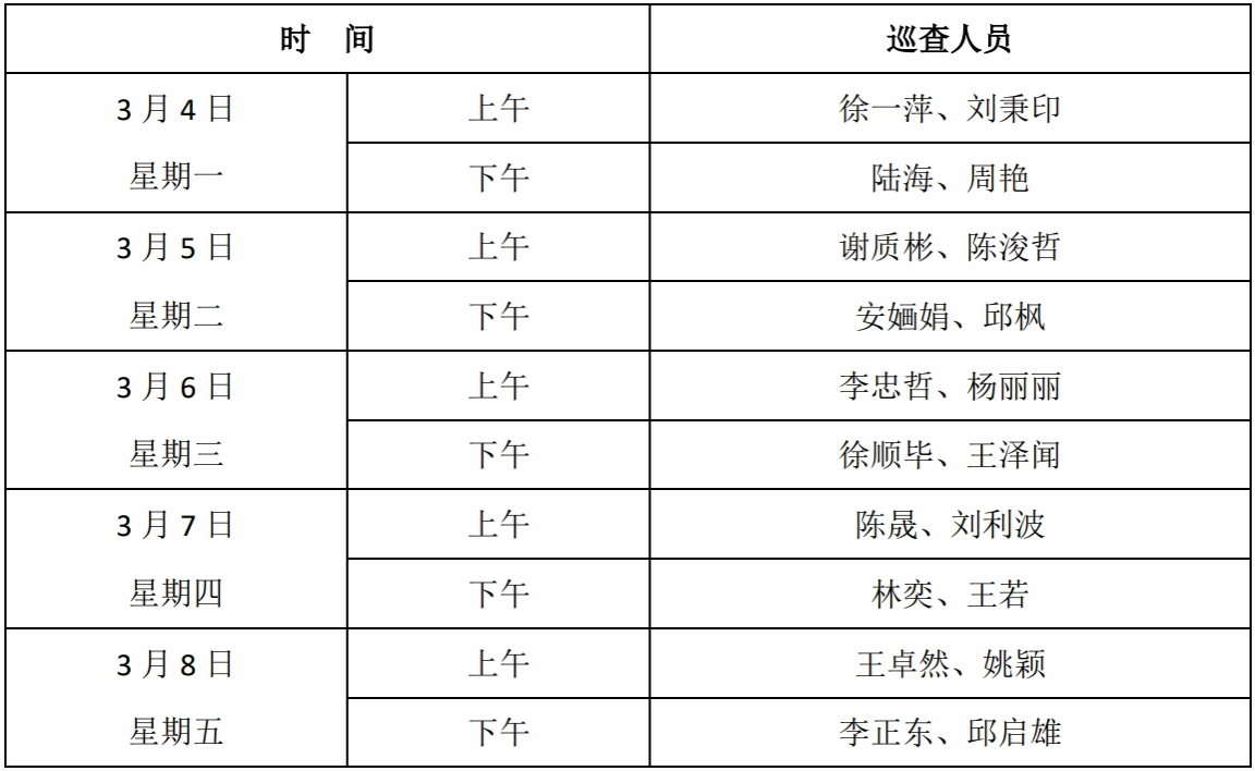二、检查时间:3月4日—3月8日(具体安排见后附表)