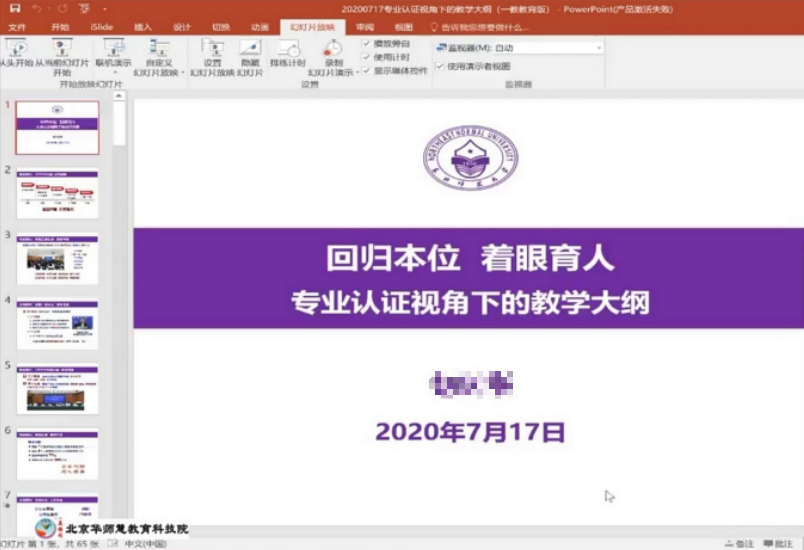 为切实推动工作进度,我院美术系师范专业认证工作小组9位成员教师(8位为板块负责人)于7月17日、18日参加由北京华师慧教育科技院等主办的“高等院校师范类专业认证实践操作经验分享研讨会”,采用“网络直播课+问题解答+直播回放”的形式,在线听取专家讲座,获取政策信息和认证工作经验,并通过资料交流与沟通,加强了对工作内容和方法的认知和理解,完成了12课时的培训学习。